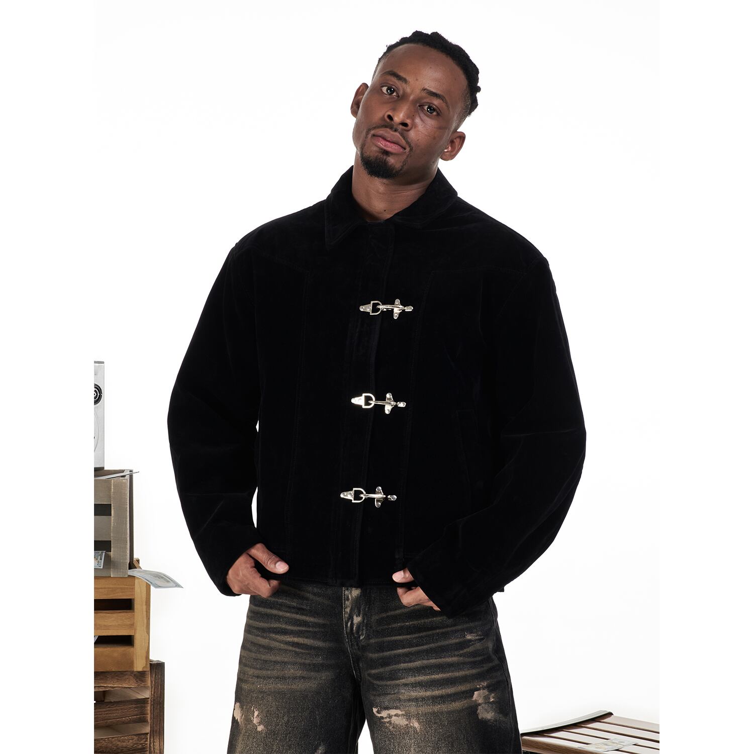 “光沢感と柔らかさを楽しむ”Buckle Metallic Suede Jacketが新登場!上質なスエード素材を使用し、柔らかい肌触りに加え、メタリックな輝きが魅力的です。スタイリッシュなデザインは、カジュアルなコーディネートから特別なシーンまで、幅広く活躍するアイテムです。羽織るだけで、印象が一気に格上げされます。シルエットも美しく、タウンスタイルにぴったりです。