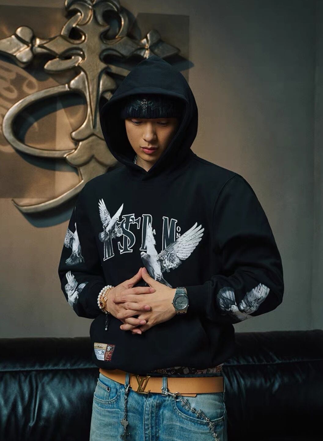 鮮烈なイーグルのデザインが特徴的なアイテムです。シンプルなスタイルの中にも存在感を引き立て、カジュアルなコーディネートはもちろん、アウトドアシーンやリラクゼーションに最適です。