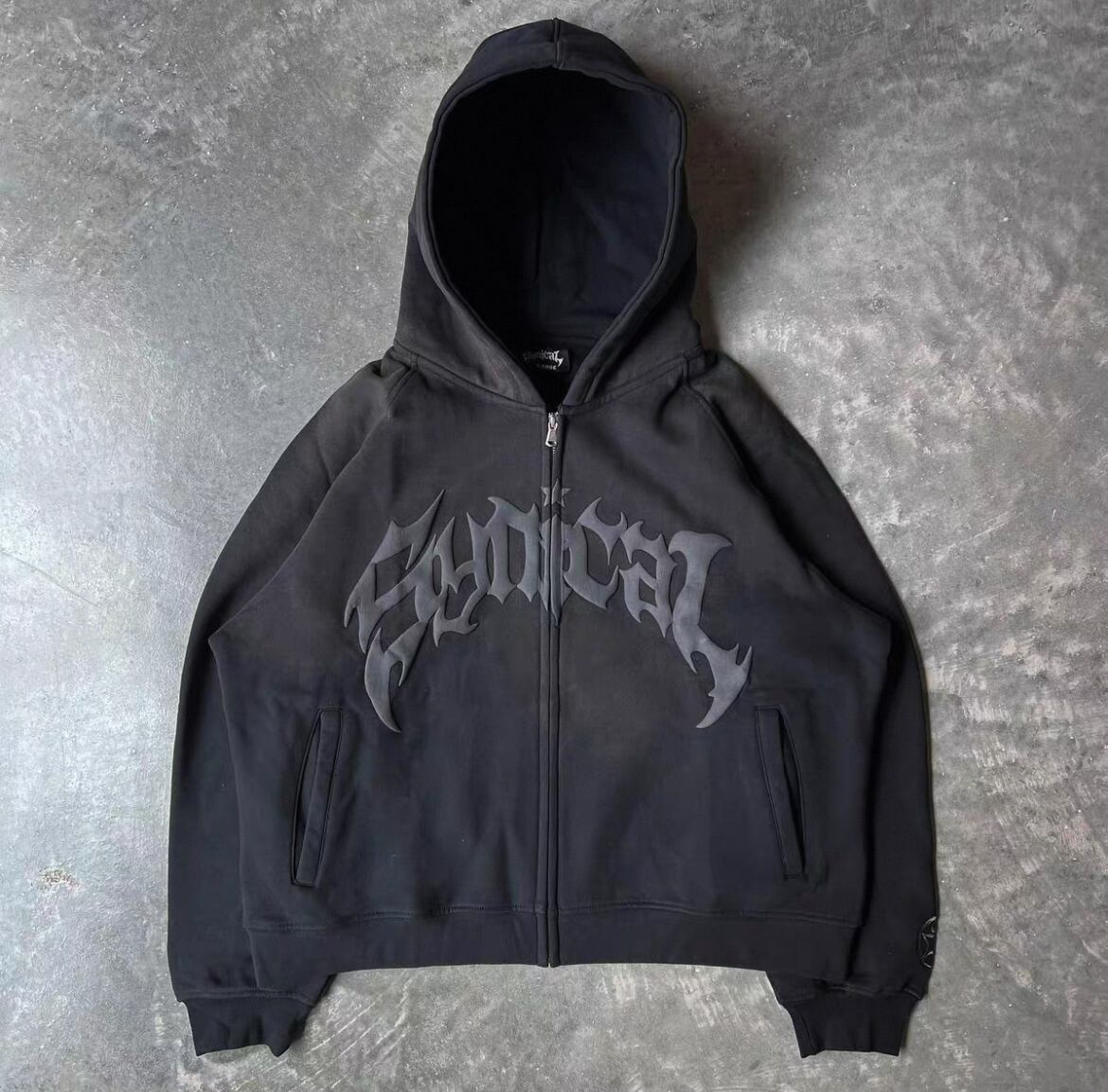 個性的でスタイリッシュなゴシックシャドウジップパーカーが登場!快適な着心地と独特なデザインが魅力で、いつものコーディネートにアクセントを加える最適な一着です。